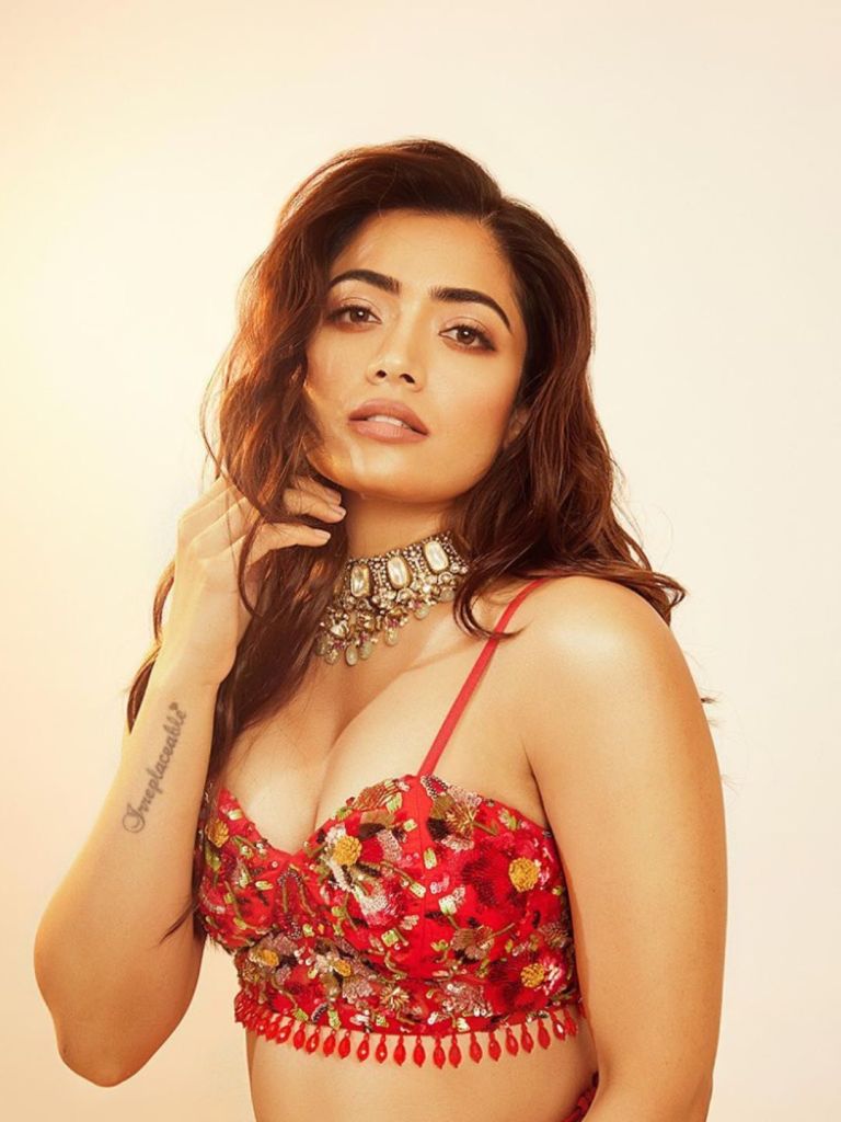 રશ્મિકા મંદાનાએ લીલા રંગની સાડી પહેરી છે, આ સાથે માંથામાં સિંદૂર અને હાથમાં લીલી-લાલ બંગડીઓથી સજ્જ એકદમ ન્યૂ દુલ્હન લાગી રહી છે. અભિનેત્રી રશ્મિકા મંદાના તેના ગળામાં હાર, નાકમાં વીંટી અને મંગળસૂત્ર સાથેનો નેકલેસ પહેરીને ખૂબ જ જબરદસ્ત દેખાઈ રહી છે. અભિનેત્રીએ લાલ બિંદી, આંખોમાં કાજલ, લિપસ્ટિક અને બાંધેલા વાળ સાથેનો આ લૂક ખરેખર શાનદાર છે.